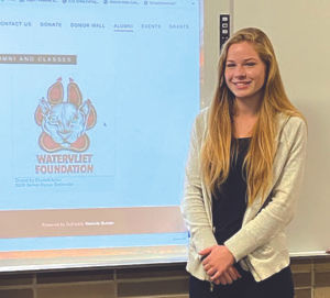 WINNING DESIGN… 2020 Watervliet High School graduate Alyssa Schlender was honored at the recent Watervliet Public Schools Foundation meeting for her talented artwork selected as the trademark for the foundation. Though the drawings had been submitted much earlier this year, due to the COVID-19 pandemic she was never honored as she should have been. Her artwork can be found on their website, https://wps-foundation.org. Information on donating to the foundation, its mission, and goals can be found on the website as well. (TCR photo by Annette Christie)